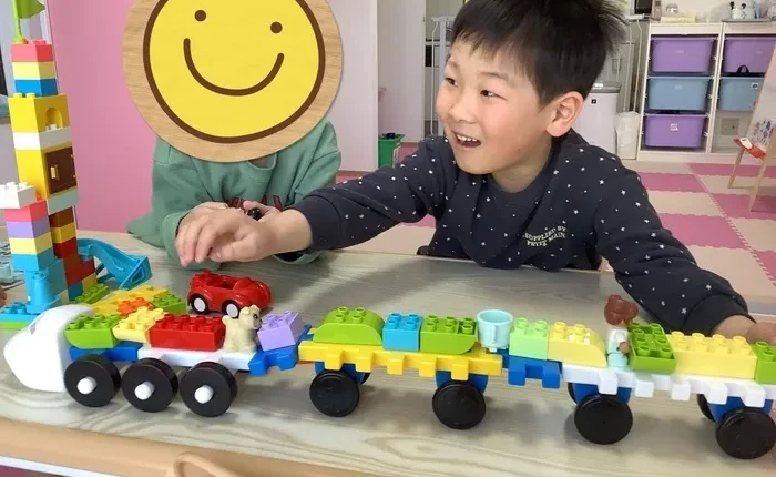 自由遊びの時間に、電車に見立てて